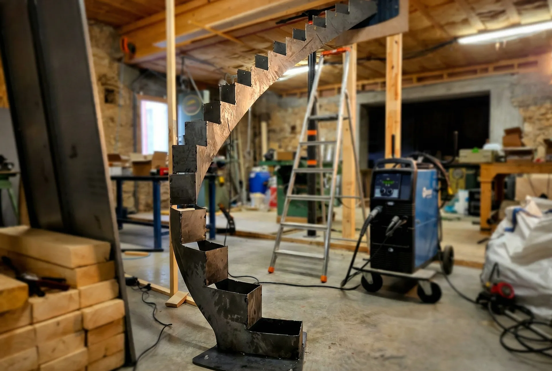 Dans notre atelier situé au cœur de la Chartreuse, nous concevons et fabriquons des escaliers sur mesure en bois et métal.